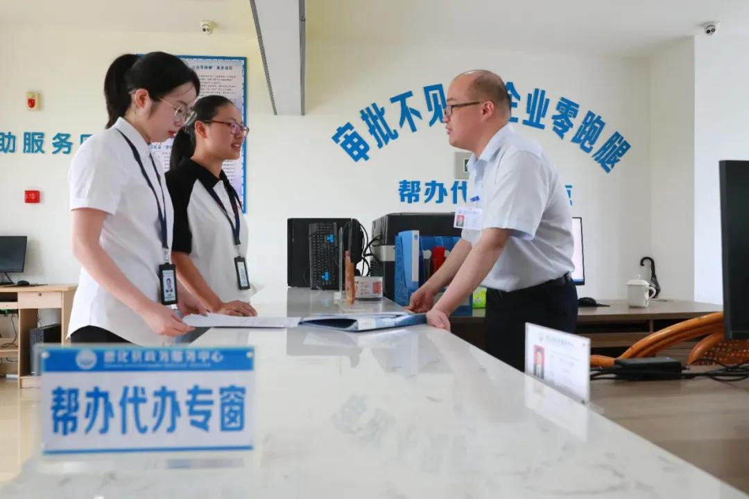 德化县纪委监委以“点题整治”为抓手,着力检查政务服务审批“堵点”、监管“盲点”等问题,并将监督中发现、企业反映突出的问题列入清单,联席会商督促相关职能部门厘清权责“断点”,健全完善政务服务管理机制。图为德化县纪检监察干部前往县政务服务中心帮办代办专区了解相关情况。(林俊贤 摄)