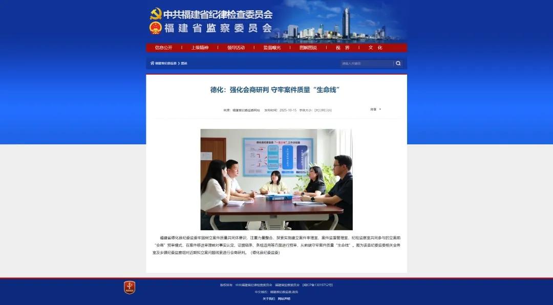 省纪委监委网站刊发!德化:强化会商研判 守牢案件质量“生命线”