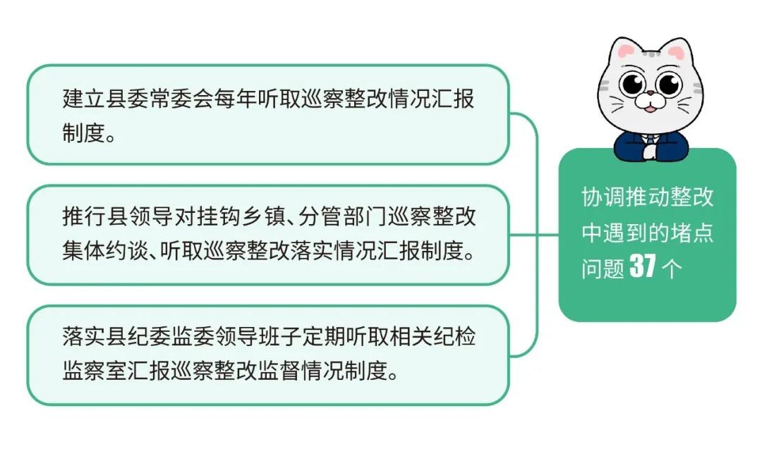 换届以来先后召开29次县委常委会、19次巡察工作领导小组会议、13次巡察工作动员部署会传达贯彻巡视巡察工作有关会议精神,研究部署巡察整改重要事项,有力推动整改落实。